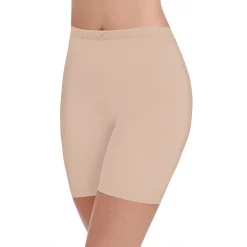 These Vanity Fair Sleek and Smooth Slip shorts feature sleek fabric with lightweight all over smoothing. The seamfree invisible edge leg design provides an invisible, no show look under clothes while providing a stay in place fit ensuring no ride up.