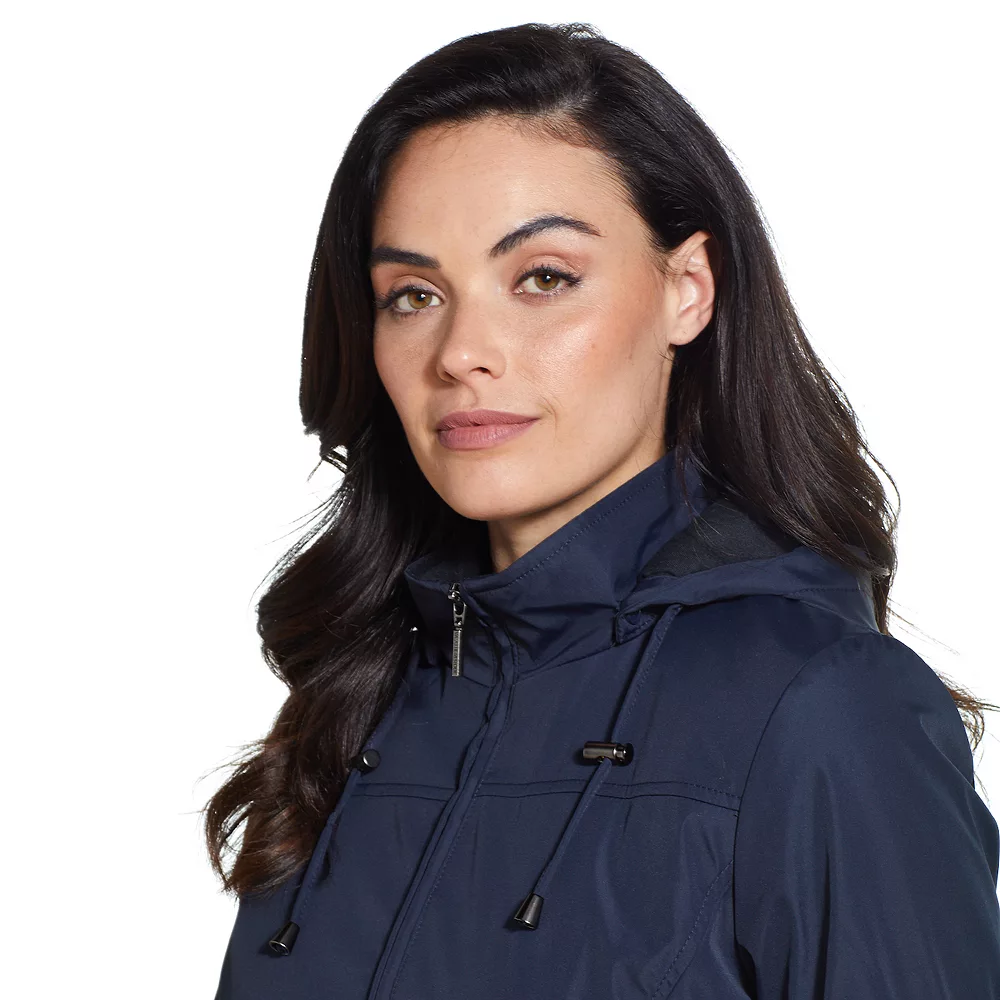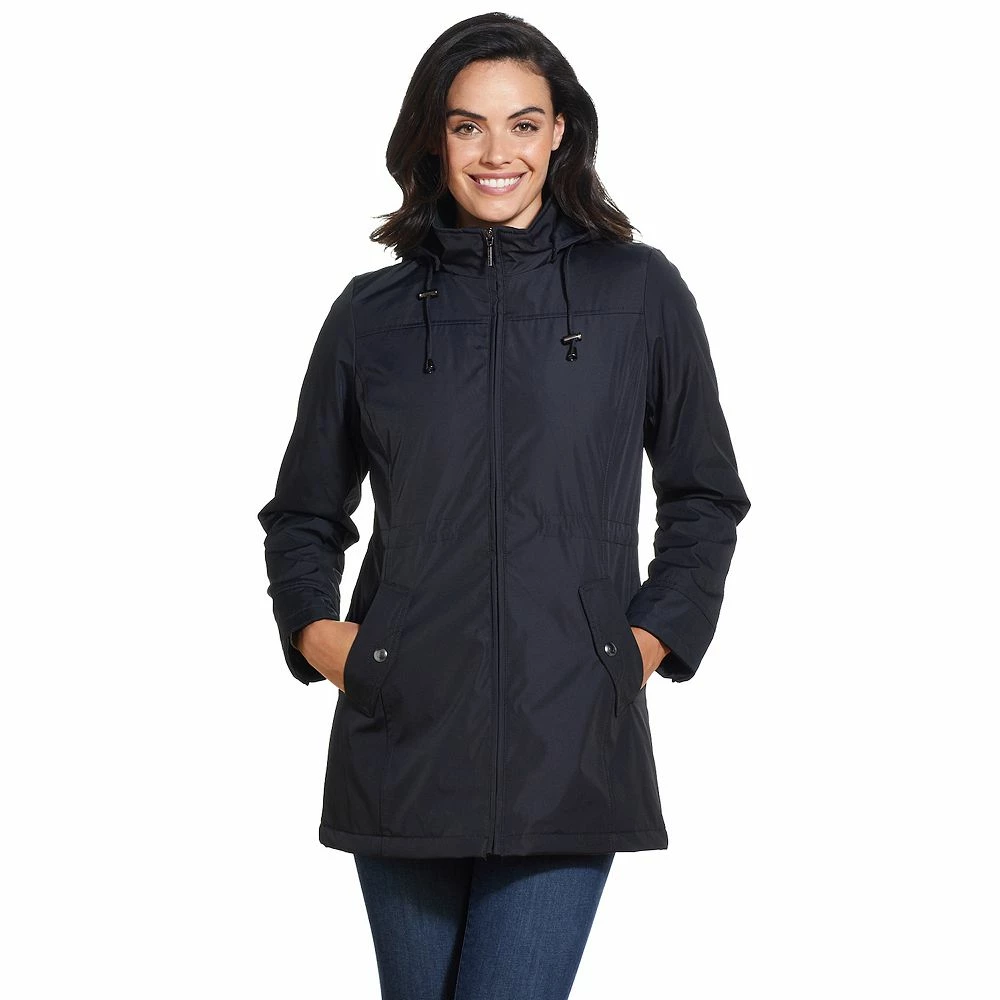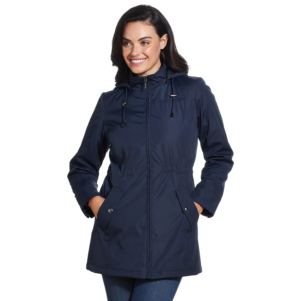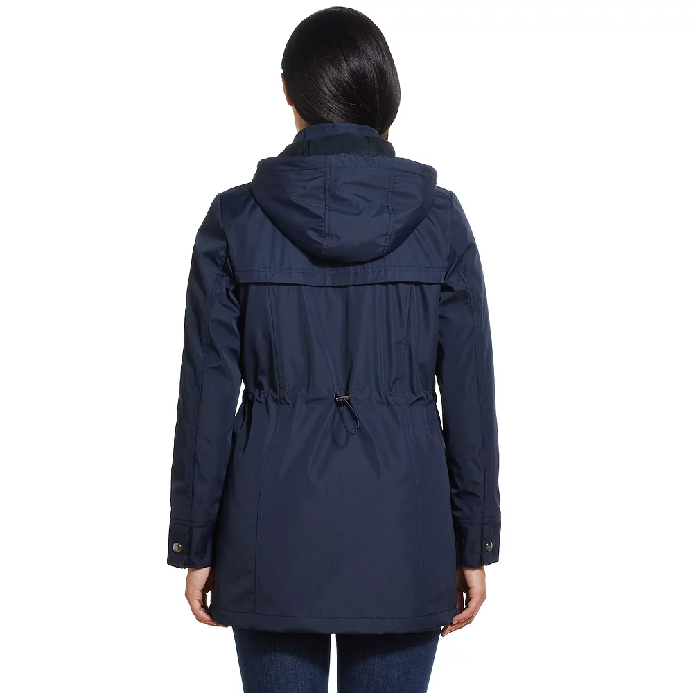 A water-resistant shell and hood make this women’s Weathercast anorak jacket a stylish choice for cool weather.