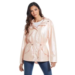 Featuring a smooth iridescent water-resistant woven construction, this women’s Weathercast metallic anorak jacket looks good and keeps you safe from the elements.