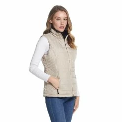 When the air gets crisp, reach for this women’s Weathercast plush lined puffer vest.