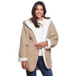 Cozy up in this women’s reversible sherpa fleece jacket by Weathercast.